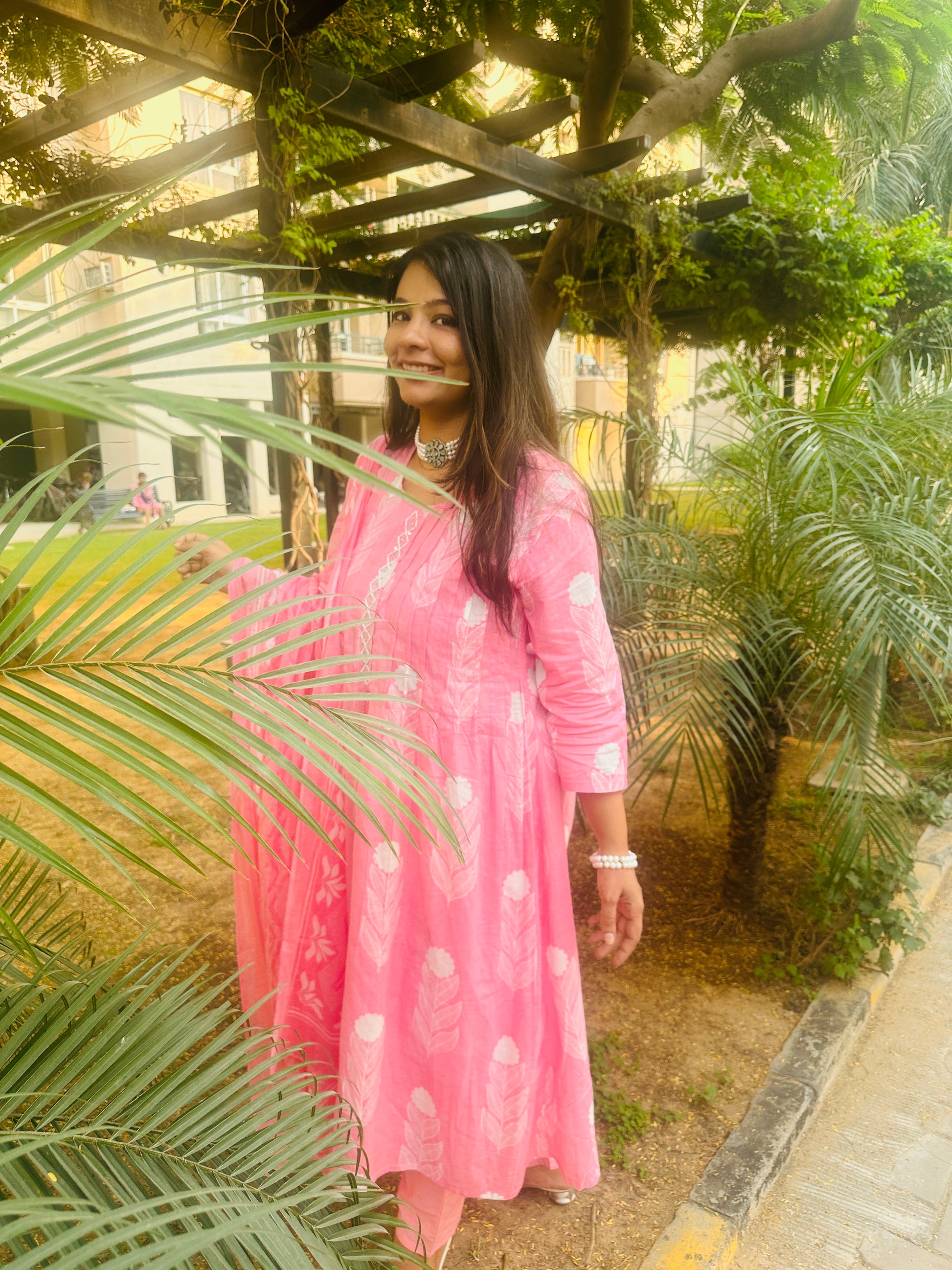 Introducing the Chandni Gulab Suit, perfect for weddings and relaxation. Made from high-quality pure cotton, this pink suit features a beautiful flower print for a stylish touch. With its breathable fabric, you can stay comfortable and chic all day long. Upgrade your wardrobe with this versatile and comfortable outfit.